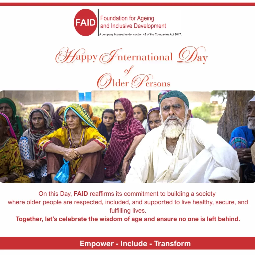 International Day of Older Persons 2025 The Foundation for Ageing and Inclusive Development (FAID) joins the global community in celebrating the International Day of Older Persons (IDOP) on October 1, 2025, in collaboration with the Ministry of Human Rights, Pakistan. This year’s IDOP highlights the invaluable role of older people in shaping resilient societies and […]