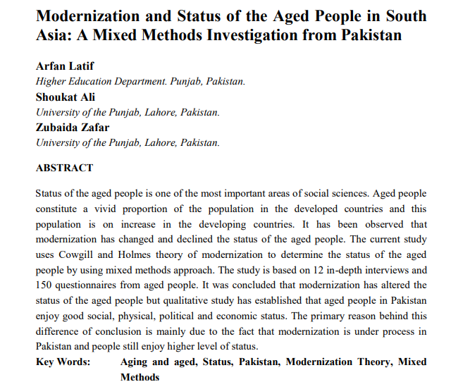 status of the aged people but qualitative study has established that aged people in Pakistan